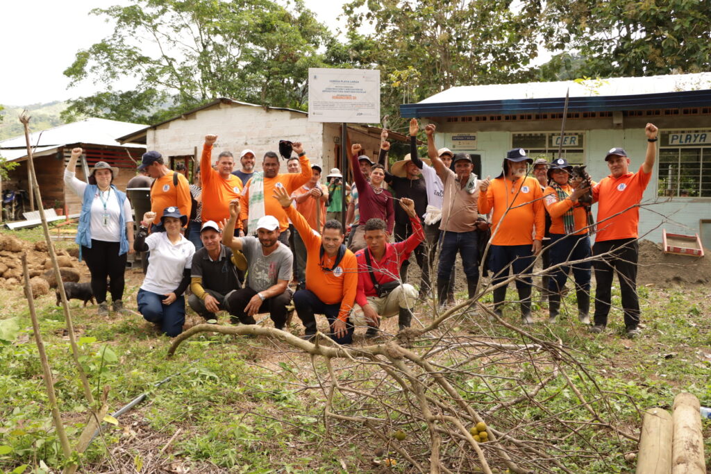 Con la llegada del proyecto “Abriendo caminos hacia la reconciliación y la paz en los territorios a través de la AICMA y la continuidad de actividades TOAR”, liderado e implementado por la Corporación HUMANICEMOS DH, con el apoyo de la Jurisdicción Especial para la Paz (JEP) y el financiamiento de la Embajada de Suiza en Colombia – Ayuda Humanitaria (COSUDE), se abrió la posibilidad de hacer realidad este sueño esperado. En el proceso, la presidenta de la Junta de Acción Comunal, Luisa Fernanda Vergara, junto a las familias de la vereda, acompañaron de manera cercana cada etapa. Pero, más allá de la obra física, el proyecto permitió la inclusión de seis aprendices TOAR, quienes pudieron vincularse a la Corporación y participar en el desarrollo de la iniciativa comunitaria, aportando activamente en su ejecución.
